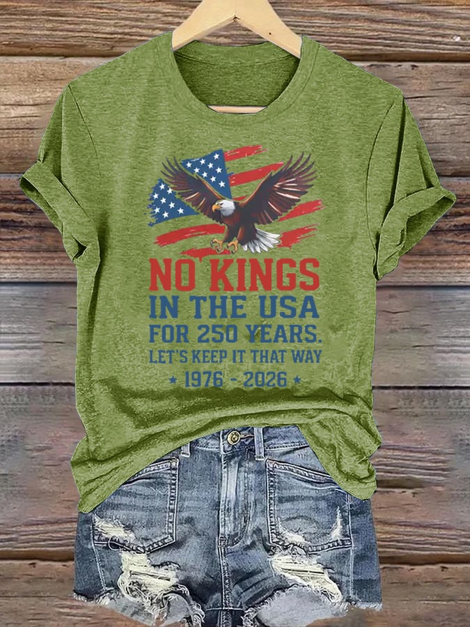 Women's No Kings USA Patriotic Tee ,250 Years of Democracy printed T-shirt