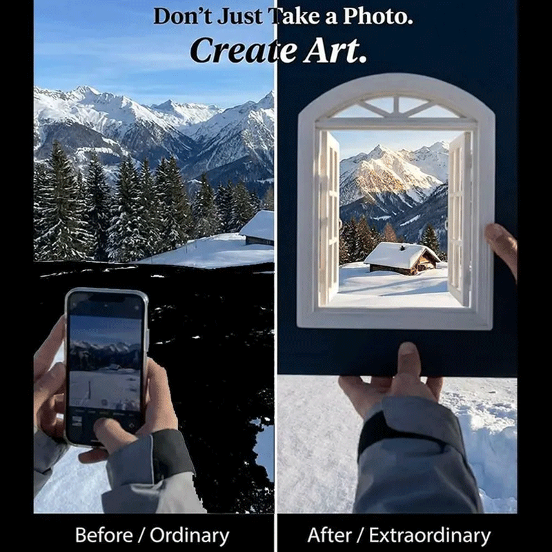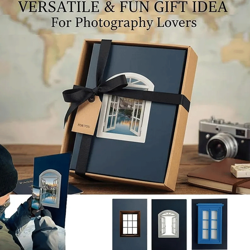 🌍 This unique window-style photography frame lets you “open” a new perspective anywhere you go. Simply place it in front of your camera, and suddenly an ordinary scene becomes a framed story — mountains, lakes, cities, even a smile framed like art.