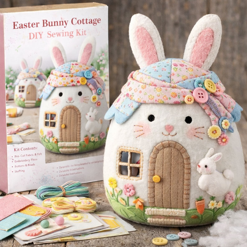 🥚Bring the magic of Easter into your home with this charming Egg-Shaped Cottage DIY Sewing Kit.