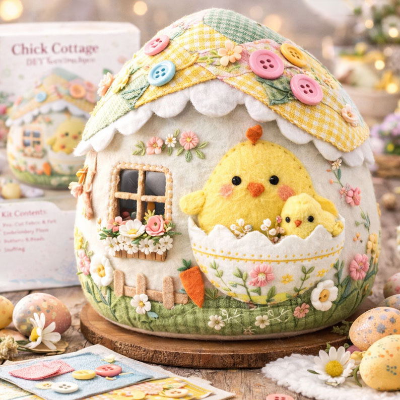 🐰Designed in a unique egg-shaped silhouette, each cottage captures the warmth of the season with embroidered florals, patchwork roofs, and sweet felt characters.