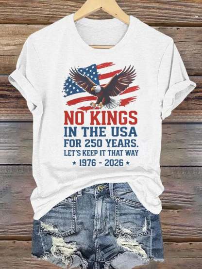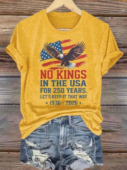 Women's No Kings USA Patriotic Tee ,250 Years of Democracy printed T-shirt